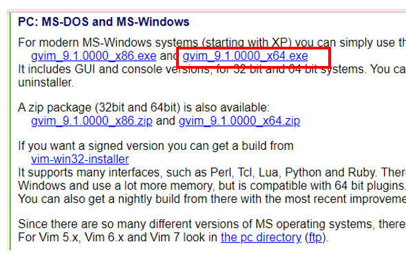 그러면 아주 친절하게 vim 다운로드 본문으로 바로 이동된다.